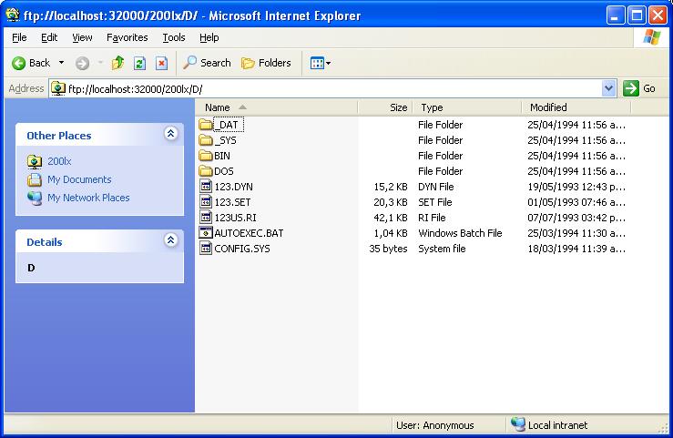 FTP Server: java rmserra.j200lx.Filer.ftpd 32000 200LX@COM1:57600